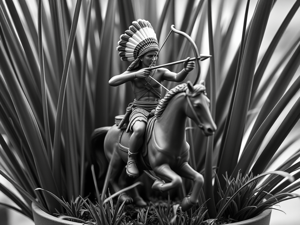 No era un impedimento para el juego el no disponer de figuras de selváticos indígenas en taparrabos, esas tribus que junto a Tarzán también habitaban la selva africana. Recurríamos a nuestra colección de indios del oeste americano, obligándoles a una tregua en la continua gresca que mantenían con la colección de vaqueros y el uniformado séptimo de caballería, para trasladarlos desde su hábitat natural, que eran las extensas llanuras por donde corrían obstinados bisontes y galopaban caballos salvajes, hasta la floresta de las macetas.